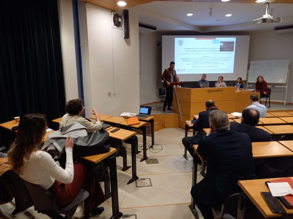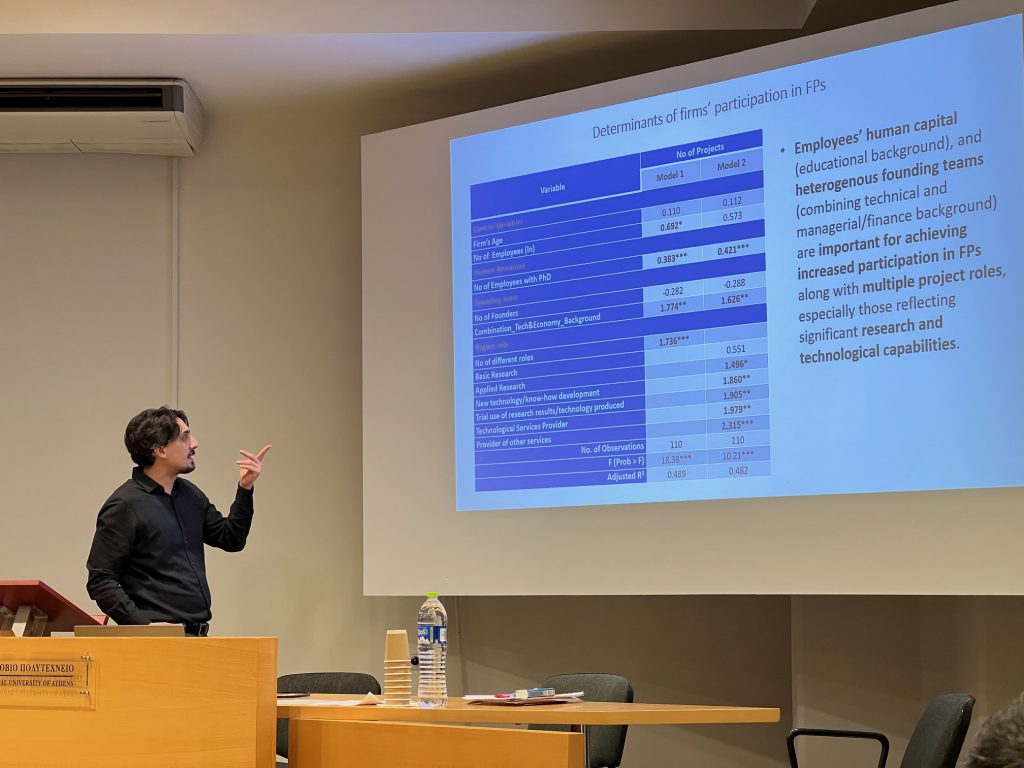 Το validation workshop πραγματοποιήθηκε διαδικτυακά την Πέμπτη 23 Νοεμβρίου 2023 (17:00 – 19:00) και είχε ως στόχο την παρουσίαση, συζήτηση και αξιολόγηση-«επαλήθευση» των βασικών ευρημάτων του ερευνητικού έργου ώστε να προκύψουν ασφαλή και χρήσιμα συμπεράσματα σχετικά με τους παράγοντες που έχουν μεγαλύτερη βαρύτητα και κρισιμότητα για την ενίσχυση του αντίκτυπου των ευρωπαϊκών ερευνητικών προγραμμάτων στο ελληνικό σύστημα καινοτομίας. Τα συμπεράσματα αυτά θα οδηγήσουν και σε κατάλληλες προτάσεις δημόσιας πολιτικής και επιχειρηματικής στρατηγικής.